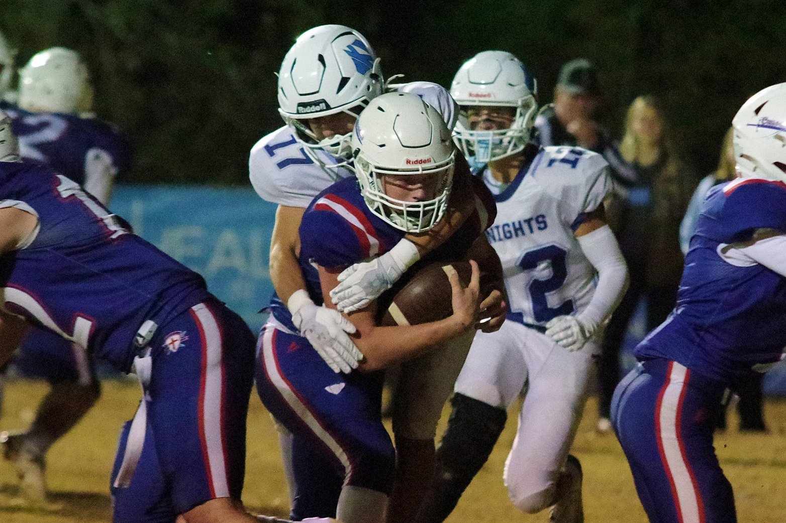Three-time Laurens County Touchdown Club Player of the Week Caleb Hardy suffered a hamstring injury in the third quarter while trying to run down a Knights’ player headed to the end zone. Hardy’s availability for the playoffs is uncertain, but the Crusaders may not need him next week.