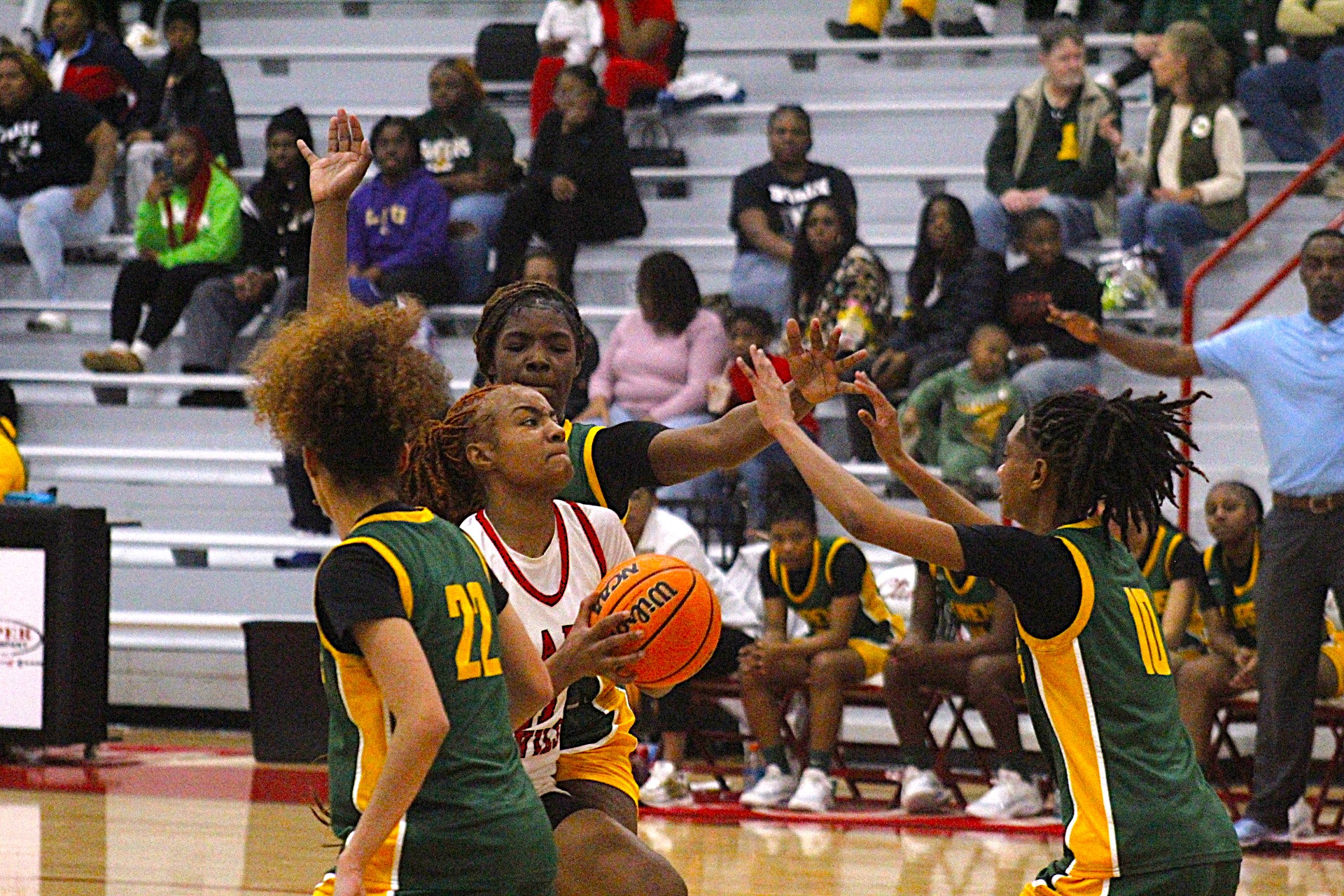 Mylayja Thompson led a balanced attack with 11 points. Kemoria Shelton and McKenzie Clark each added 10.