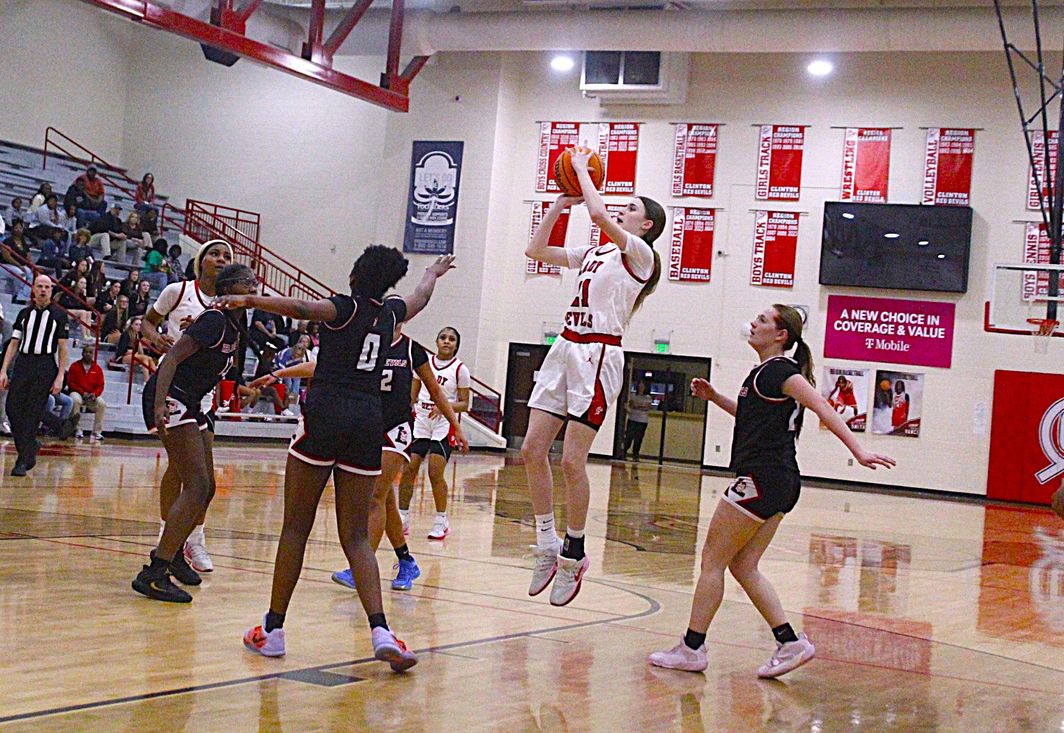 Kemaria Shelton scored nine of her 11 points in the opening half. All nine Clinton players who played scored: Mylayja Thompson (8), Nah’shia Wright (8), Allenson Cook (7), Anirah Hill (7), Emma Patterson (3), McKenzie Clark (2), Kyleigh Van Tassel (2) and Symiah Floyd (1).
