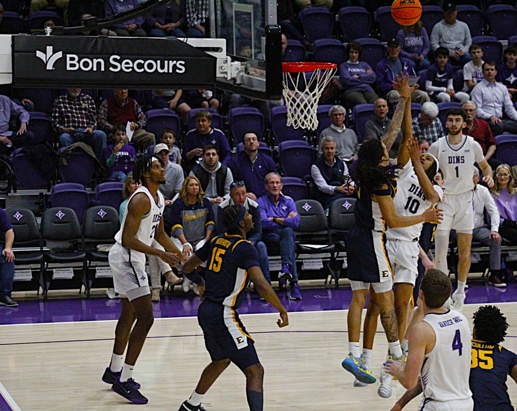 After Furman outscored the Bucs 11-7 over the first 5:30 of the second half to grab a 45-41 lead, ETSU connected on seven consecutive shots, including five straight from three-point range, to reel off a 20-4 run that ultimately decided the game. Smith scored back-to-back buckets to even the score before Matthews’ triple put the Bucs in front 48-45. Alex Wilkins’ layup got Furman back within one point, but Matthews and Cam Morris III drained consecutive threes and Matthews and Isaiah Sutherland followed a pair off Furman free throws with another set of back-to-back triples extended the ETSU margin to 61-49 with 9:26 remaining.