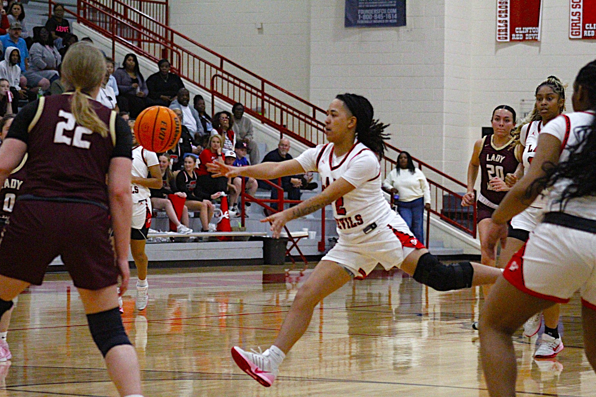 Also etching the scorebook for the Red Devils were McKenzie Clark with eight points, Allenson Cook with three, Emma Patterson with two and Nah’shia Wright with one.