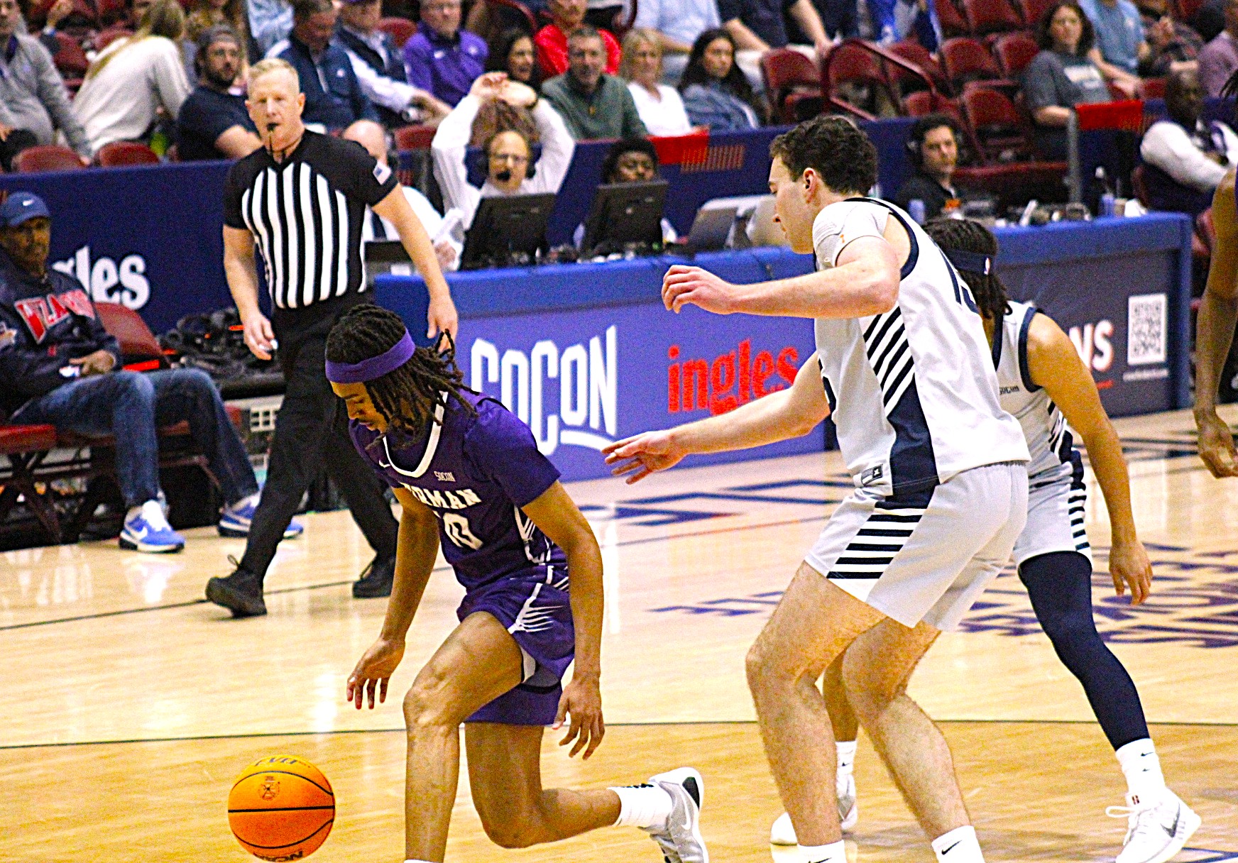 It’s been a while since I saw a better game. I saw a fine one that ended in the wee hours of the same day. In Johnson City, Tenn., where Presbyterian upset Radford in overtime, 91-85. The Blue Hose put up another fight on Saturday, while I was back at one of my favorite places, Harrah’s Cherokee Center, watching the Paladins win, 86-81.
