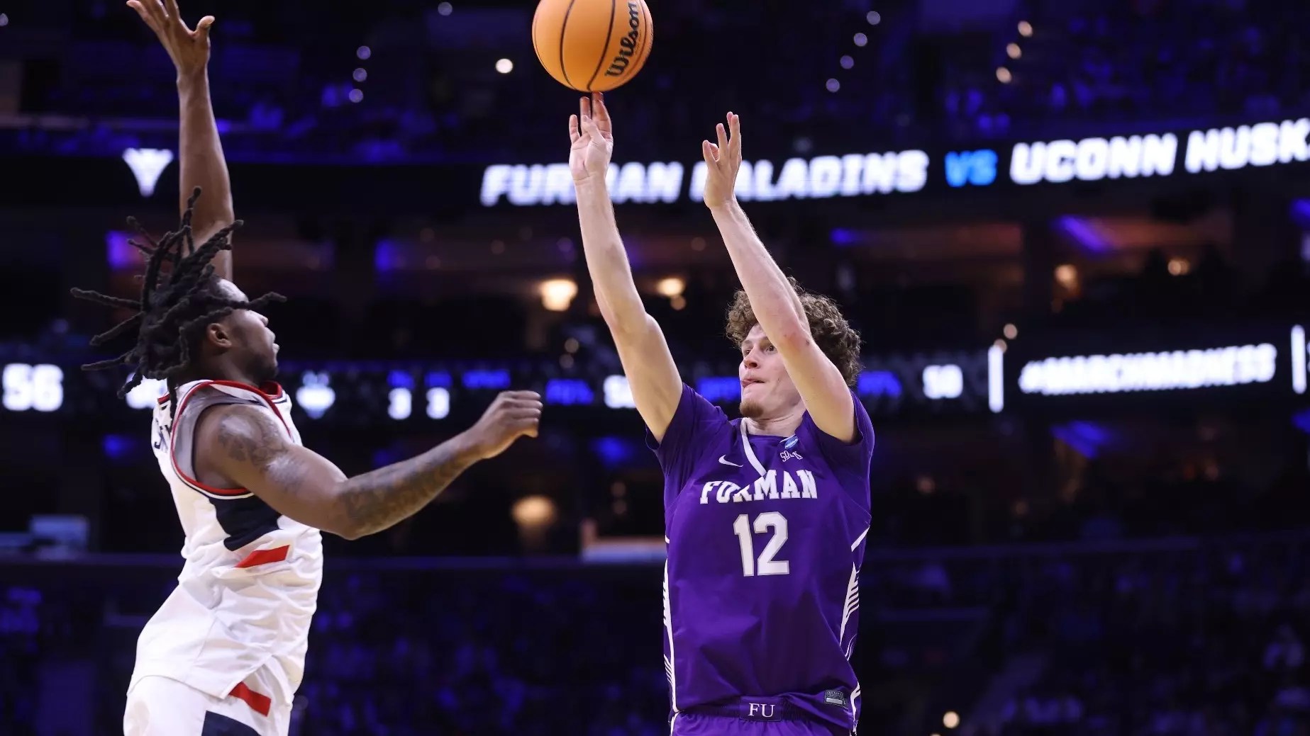 Connecticut (30-5), a No. 2 seed, defeated Furman, a No. 15, by a score of 82-71 in the opening round of NCAA men’s basketball tournament late Friday night and Saturday morning in front of 19,636 at Philadelphia’s Xfinity Mobile Arena.