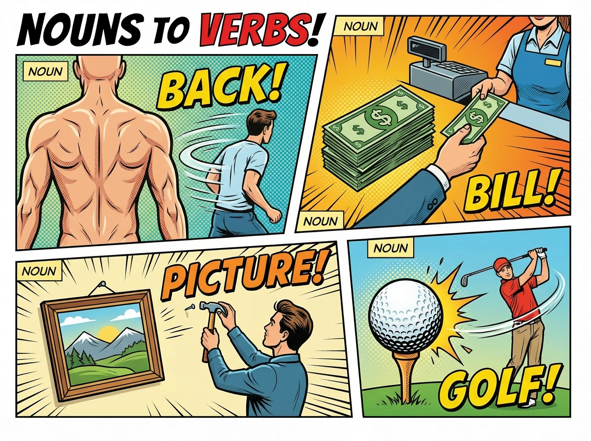 I’m not writing a story. I’m laptopping. Several times a week, I story the games. I like to guitar old country songs. On Friday, I club sandwiched at Steamers. I spent half Saturday afternoon laundromatting. Then I groceried for a while. One basketball team is adept at turnovering another.